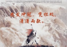 怒发冲冠,凭栏处、潇潇雨歇。抬望眼、仰天长啸,壮怀激烈。三十功名尘与土,八千里路云和月。莫等闲、白了少年头,空悲切。